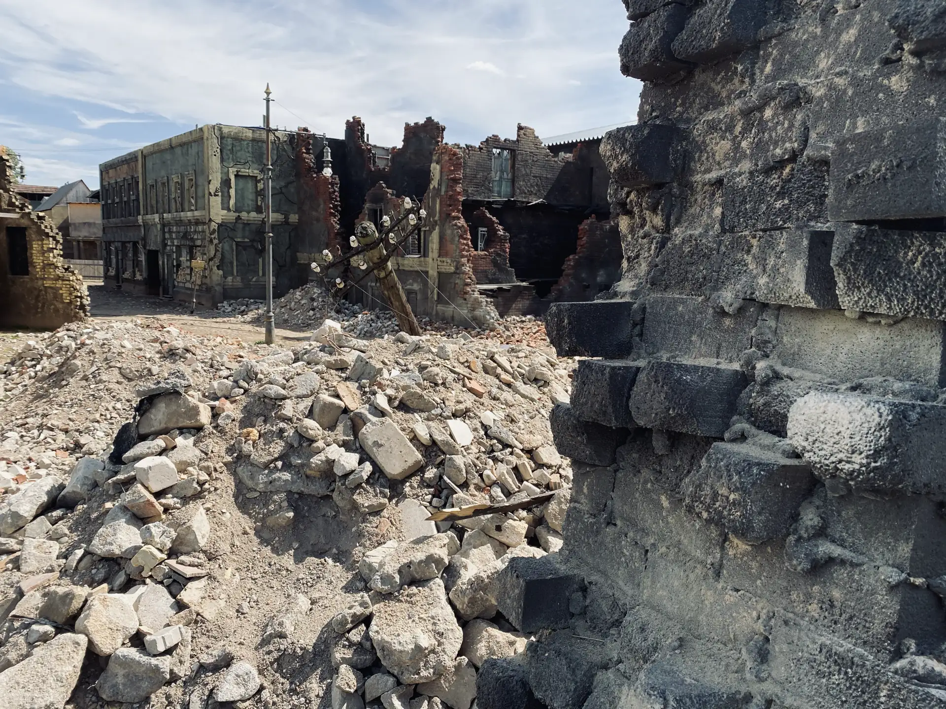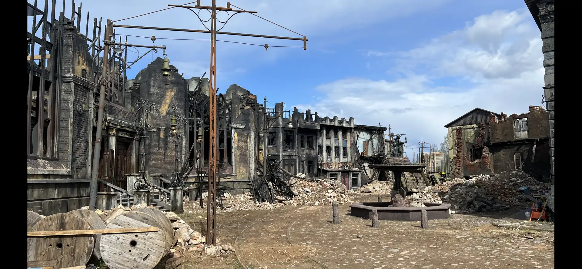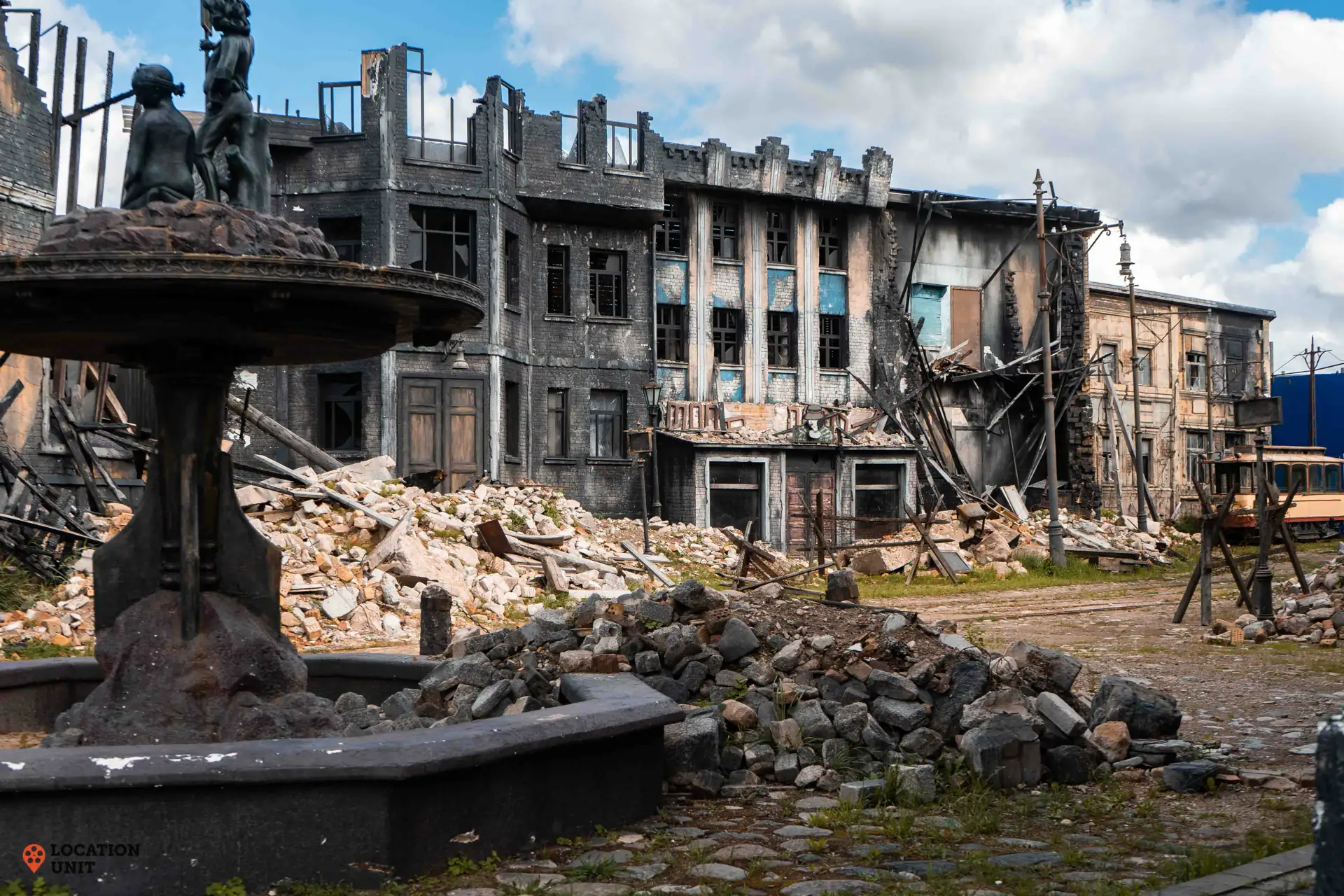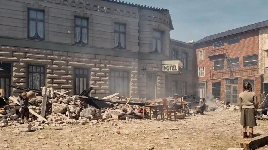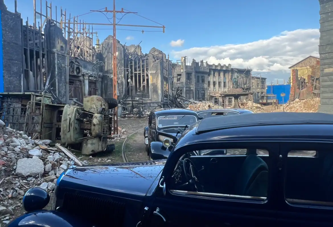 이 유령 세트는 전쟁의 참혹한 여파를 묘사하고 있습니다. 폐허와 잔해가 거친 분위기를 자아내 영화 제작자들이 제2차 세계대전의 참혹함을 담아낼 수 있습니다.