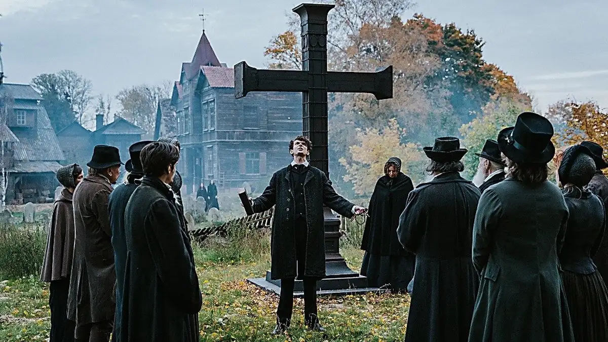 뱀파이어를 주제로 한 영화 '레이븐스 할로우'에 사용된 이 으스스한 공동묘지는 고딕 호러의 정수를 담고 있습니다. 낡은 묘비와 안개가 자욱한 환경은 어두운 이야기들을 위한 불안한 배경을 제공합니다.